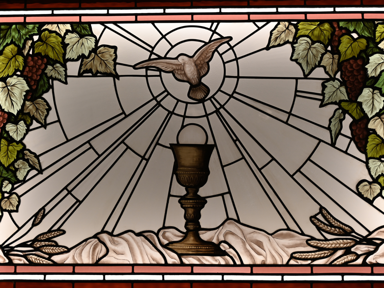 Moment de grâce au Moulin vendredi dernier pour la bénédiction du nouveau vitrail qui habite désormais l’Oratoire : la colombe de l’Esprit-Saint et le Calice de l’Eucharistie représentés avec délicatesse sont