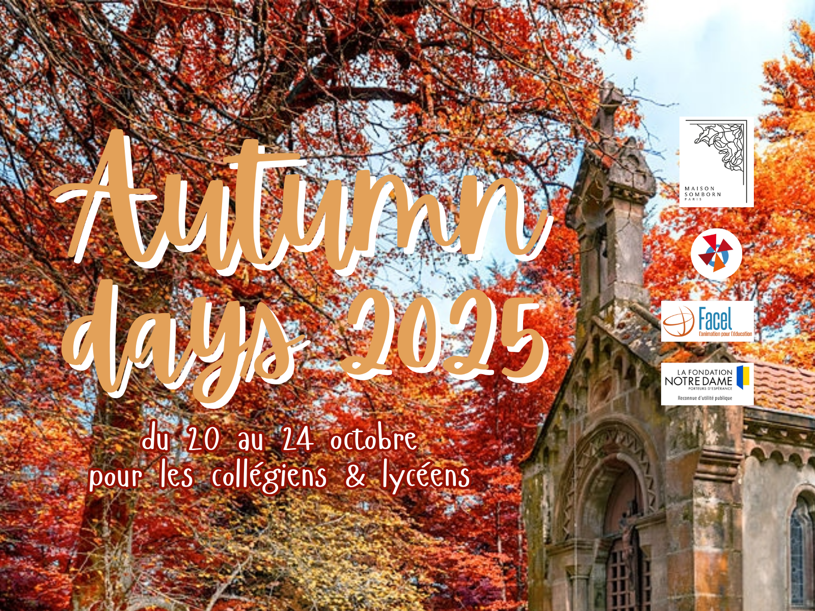 Les inscriptions pour les Autumn Days 2025 sont ouvertes ! Nous sommes heureux de proposer à nouveau cette belle semaine de loisirs pour les collégiens et lycéens. Au programme :