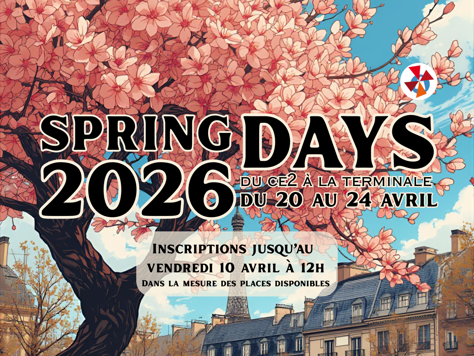 Inscriptions ouvertes pour les Spring Days du Moulin à Paris 17 ! Nous sommes heureux de proposer la deuxième édition des Spring days du Moulin Paris 17 : une semaine d’activités de loisirs pour